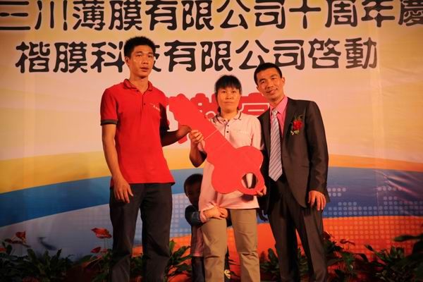 三川薄膜有限公司總經理謝偉鋒在臺上講話